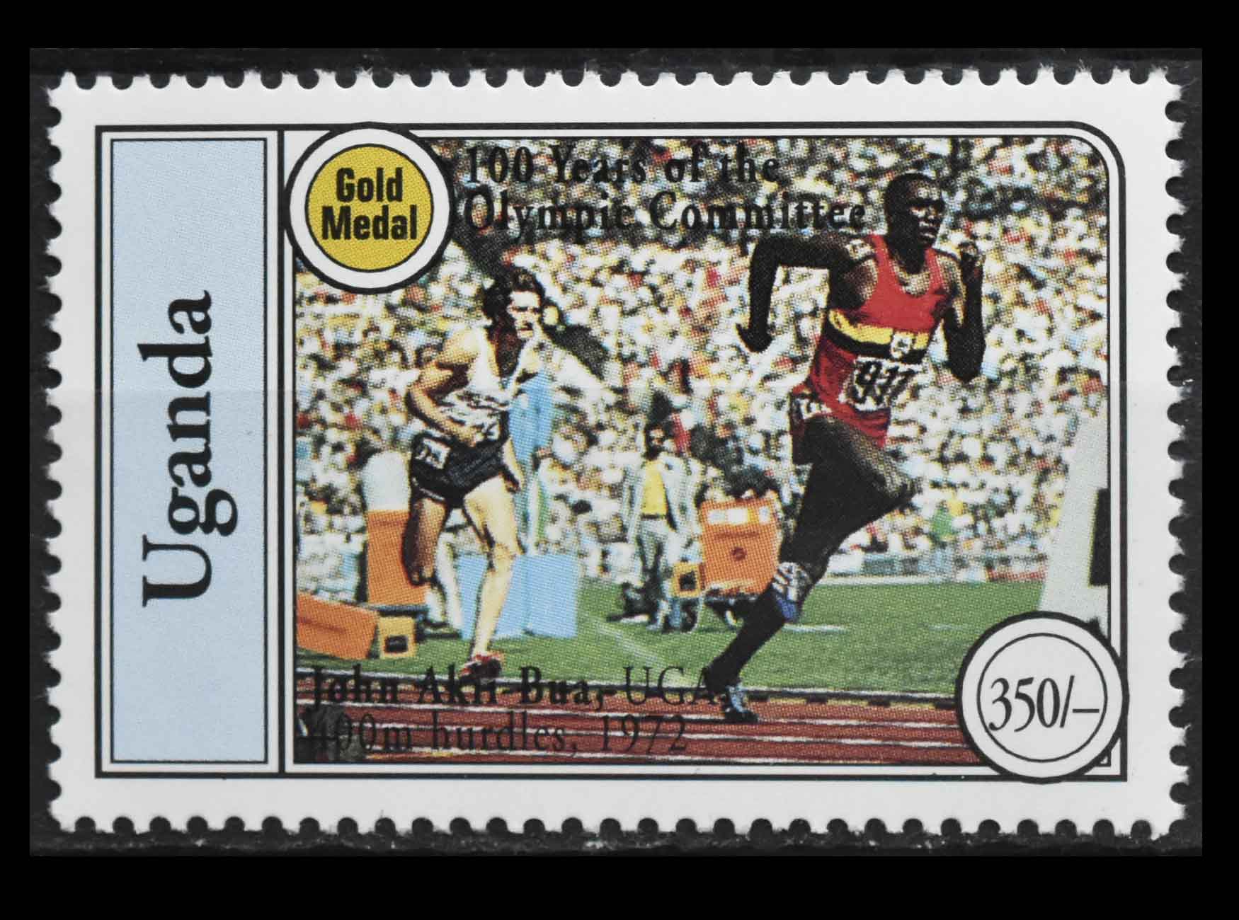 Уганда 1994 г. "Джон Акии-Буа, золотая медаль в беге на 400 метров с барьерами"