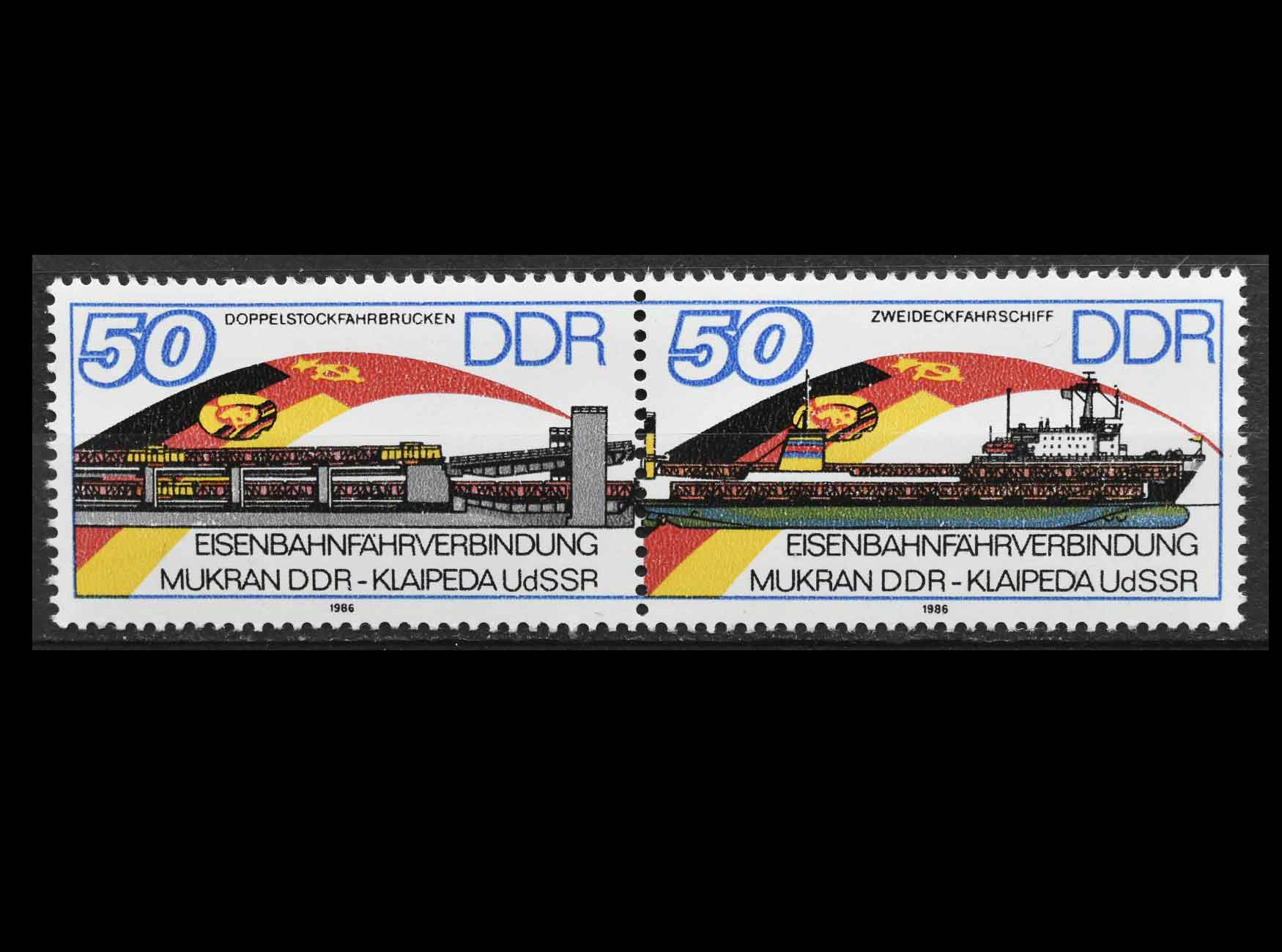 ГДР 1986 г. "Открытие железнодорожного сообщения Мукран (ГДР) - Клайпеда (СССР)"