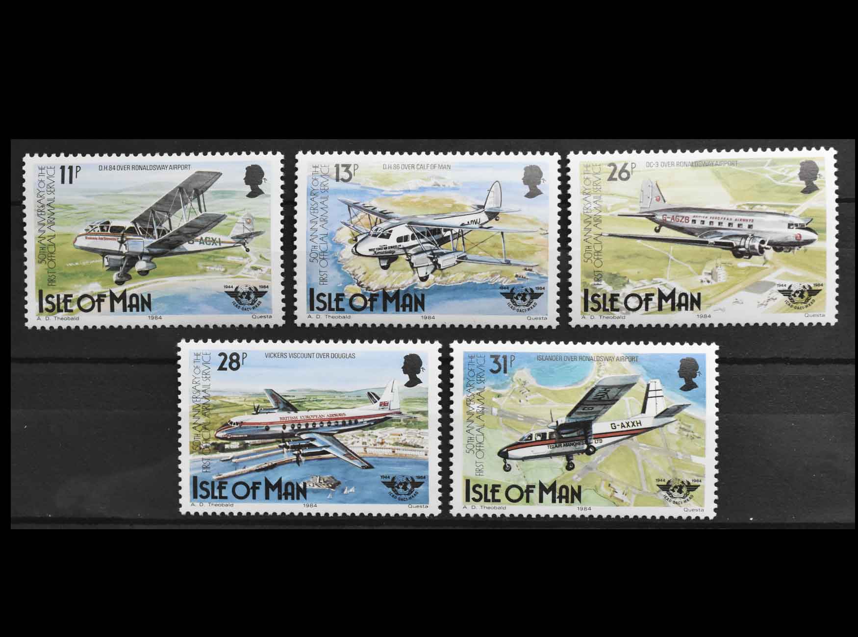 Остров Мэн 1984 г. "50-летие авиационного сообщения; 40-летие ICAO"